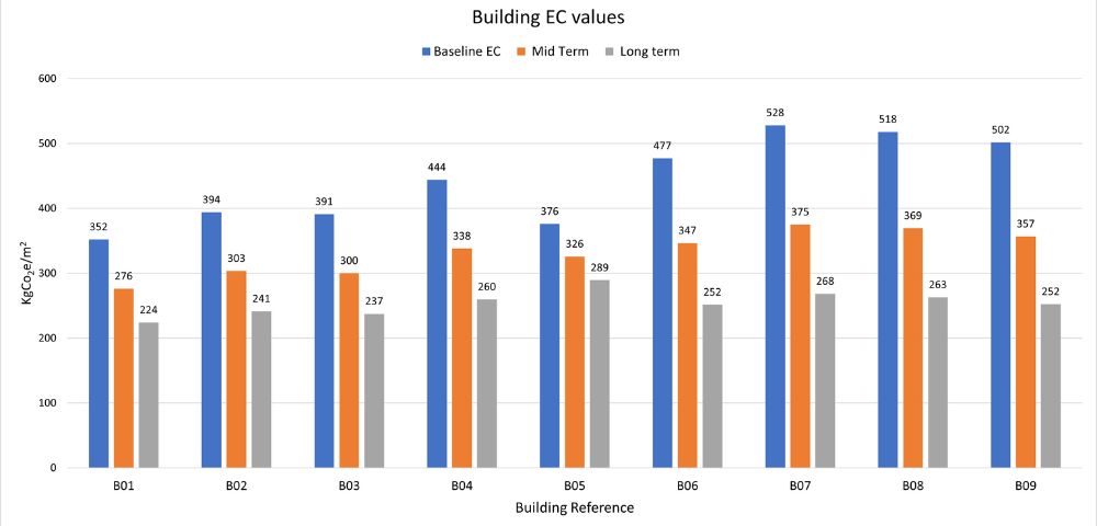 4. Embodied carbon assessment for various buildings