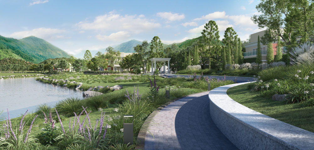River deck with jogging path